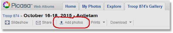 - Navigate to www.troop874.com->links->photos, then sign in to Google using the ‘Sign